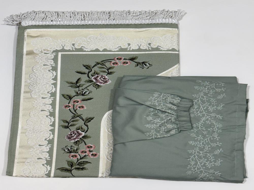 طقم شرشف مرد مطرز الطول 155 cm من الكتف. مع سجاده. 1 cm اللون اخضر زيتي