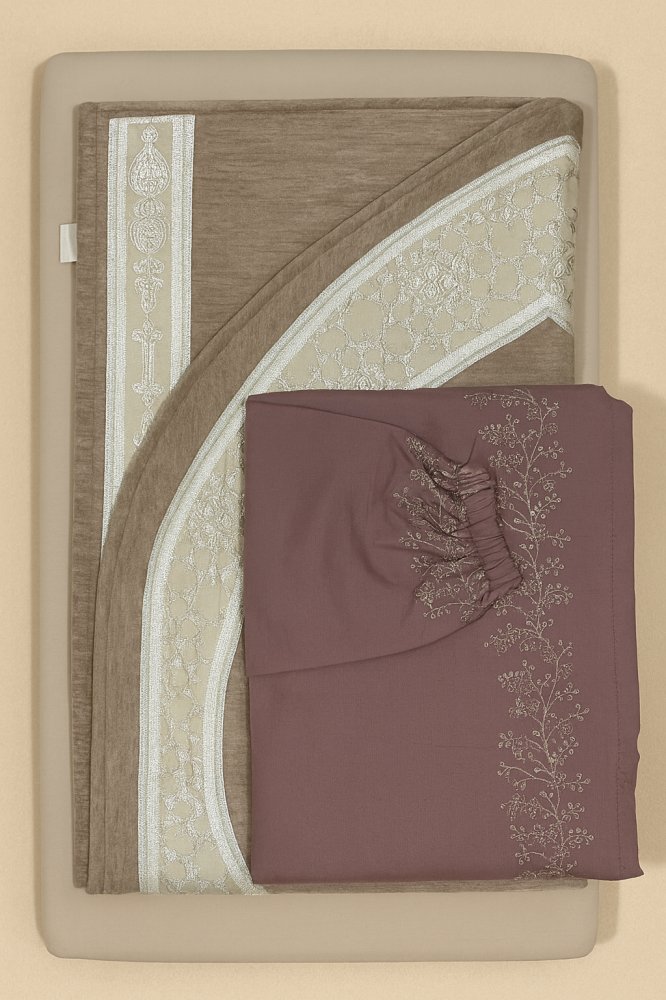 طقم شرشف مرد مطرز قطن الطول من الكتف 160cm مع سجاده تركي مبطنه اسفنج 1 cm اللون موف